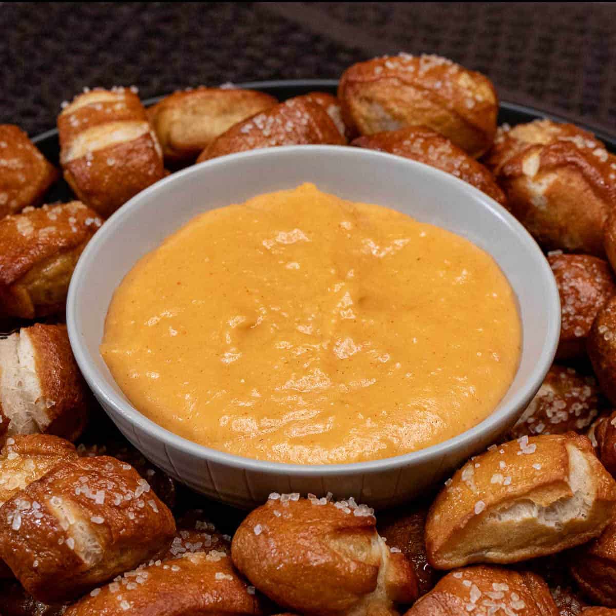 The beer cheese dip will continue to thicken as it cools. If you would like it a bit thinner, add some more beer or half-and-half. Pour the cheese sauce into a serving bowl for dipping and serve warm. Alternatively, add to a small slow cooker to transport and keep warm while serving.