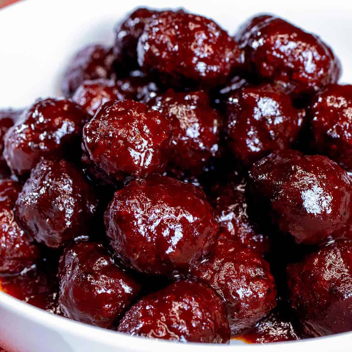 1) Meatballs – For slow cooker meatball recipes I prefer to use frozen ½ inch meatballs. These are typically sold in 26–32-ounce bags and can be “homestyle” or “Italian style” and either will work. In slightly smaller packages you may also find Angus beef, chicken, or turkey meatballs, or larger “family” packs sold in 48oz versions.If using a smaller, 18-22oz package, I would cut back by ½ cup on both the blackberry and BBQ sauce. Using the larger family pack, you would have to tweak the recipe as well and need a second bottle/jar of BBQ and blackberry, so it may be easier to get two smaller packs and double the recipe.If you wish to use a homemade meatball recipe, I recommend pan-searing or baking first, cooling completely, and freezing overnight. Fresh made meatballs will easily fall apart during a long cook time in a slow cooker.2) Blackberries – I suggest using jarred blackberry preserves for this recipe, and not fresh or frozen blackberries. If possible, I also recommend a seedless version, and one made with sugar and not high-fructose corn syrup.3) Different Ingredients – If you want to try other ingredients, check out the variations section in the post above the recipe card.4) No Slow Cooker – Instead of using a slow cooker, you can make these the same way but dump everything into a pot on the stove set over medium heat and stir together. Once the sauce begins to bubble, lower the heat to low and simmer, covered, for about 25-30 minutes, giving it another stir occasionally. Uncover, and let simmer for a few minutes more if the sauce needs to thicken.If you have a slow cooker, or the party host has an extra one, you can place the meatballs in one at their house and set it to warm for serving. You can also transport them in your slow cooker if you have one but need to use this method for time.