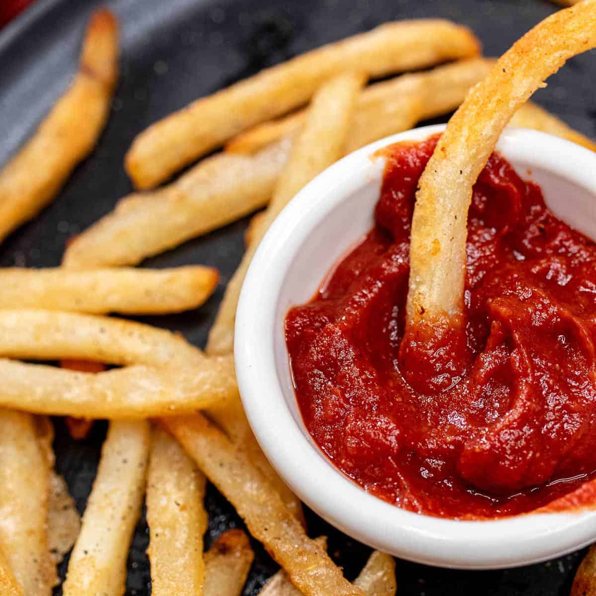 1) Sugar – Keep in mind that altering the recipe can change the shelf-life. Both the vinegar and sugar act as preservatives, so a sugar-free version or using sugar substitutes can affect the overall shelf life of your ketchup.2) Flavor Variations – Read the post above for lots of ideas on different flavored and spicy ketchups. Most of the additions you will add around 1-2 tablespoons of the mentioned ingredients.3) Heinz Copycat – If you love the taste of Heinz ketchup, the optional spices will give this homemade version a similar flavor. Use cinnamon and cloves very sparingly however, as the flavor they add can be overwhelming when using much more than a literal pinch.4) Fresh Tomatoes – You can also make this ketchup recipe using fresh tomatoes if you prefer. You’ll need about 6 cups worth of tomatoes and remove the water from the recipe. Process the tomatoes with a food mill, food processor, or hand blender, then run through a sieve or strainer to remove most of the skin and seeds. Bring the tomato liquid to a boil, then lower to a simmer and cook until reduced, about 40-50 minutes. Add the rest of the ingredients as listed and cook and reduce a bit more until thickened.
