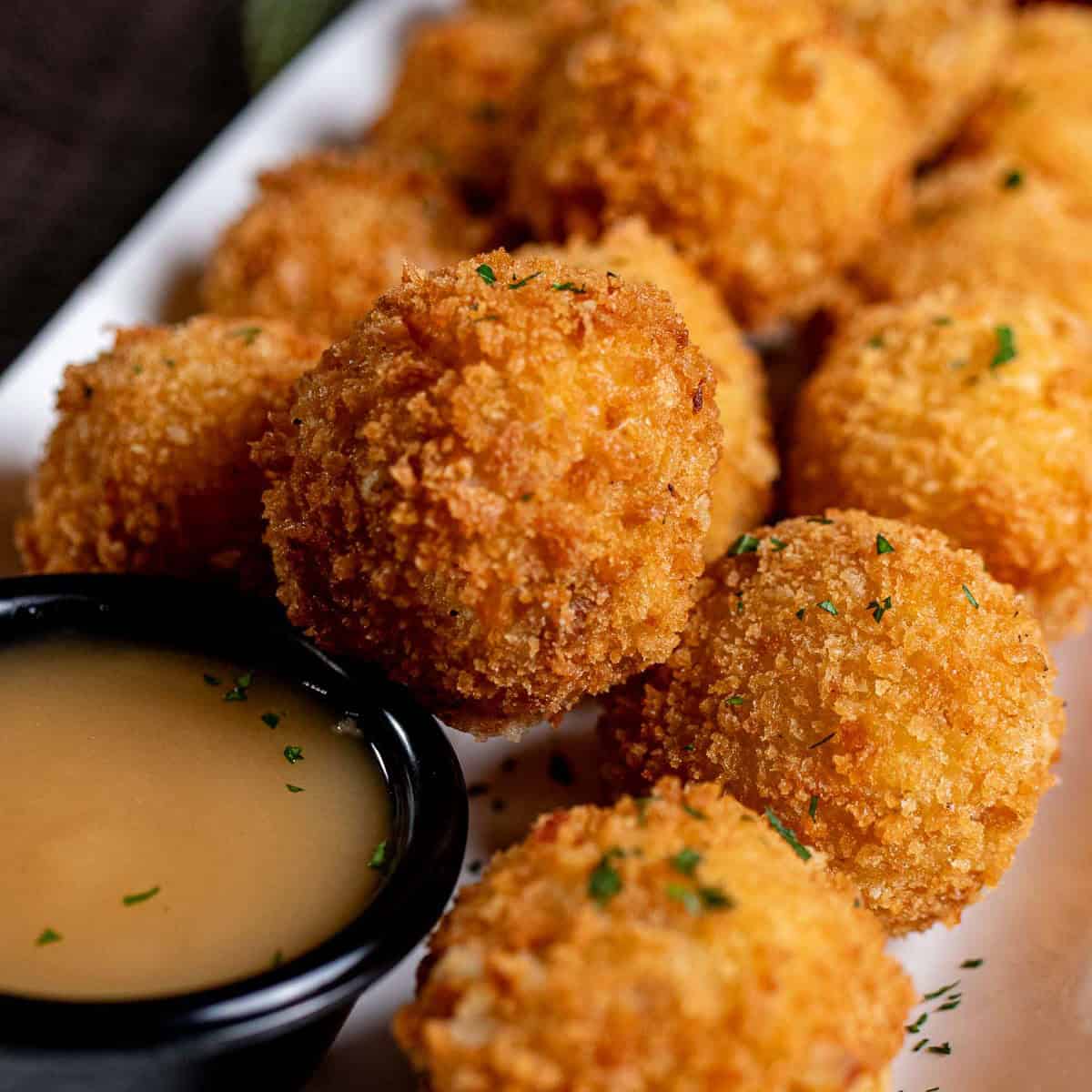 If you don’t have a cookie scoop, you can make the croquettes by hand. Roll into balls slightly smaller than golf ball size.