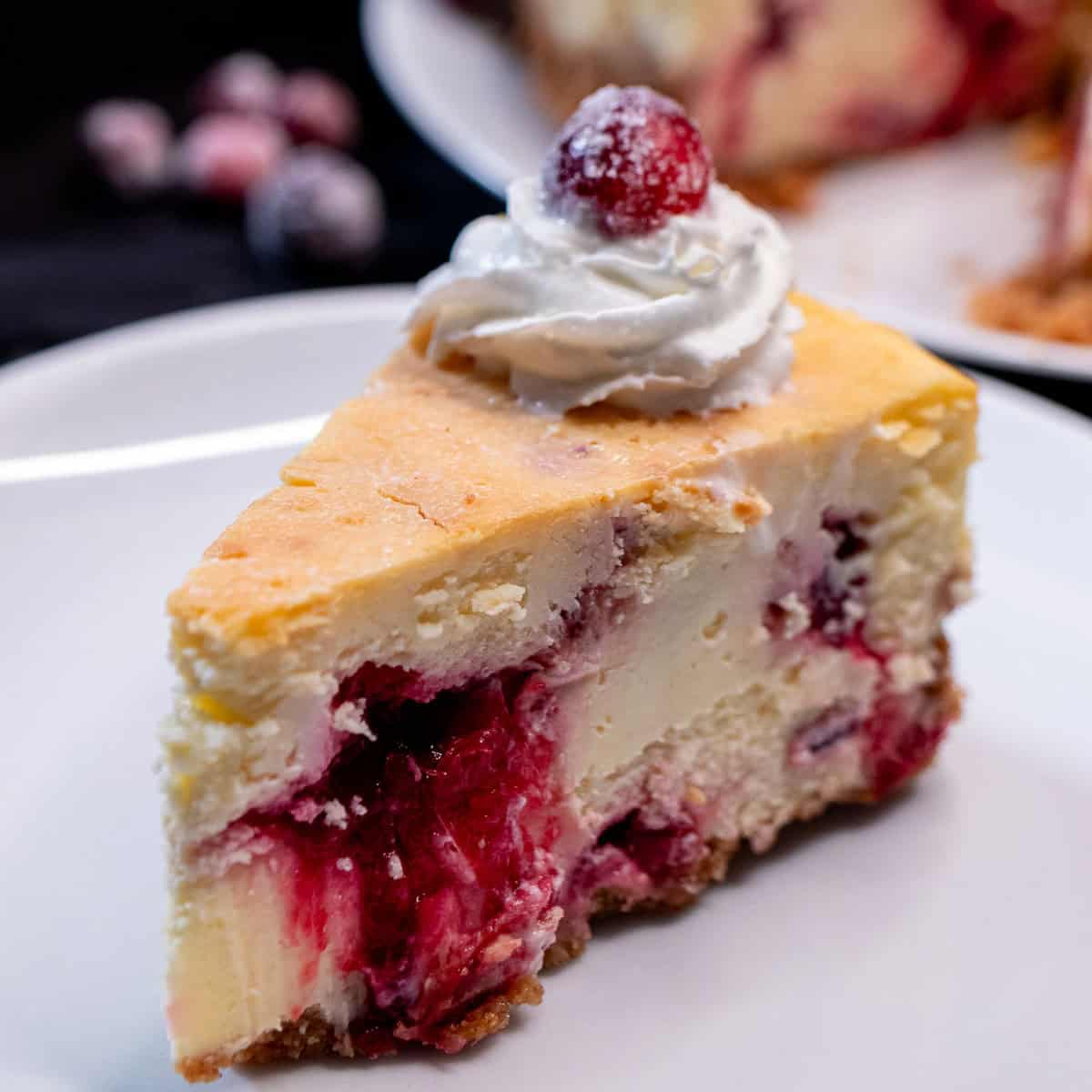 1) Pan Sizes – This cheesecake can be made in either a 9” or 10” springform pan. The larger pan will make a slightly larger but shorter cheesecake. This recipe makes too much cheesecake for an 8” springform pan and it will likely overflow as it cooks, so stick to one of the other two sizes.2) Water Bath – If you hate cooking cheesecakes in a water bath, you can get a similar effect by placing a 13x9 baking pan half full of water on an oven rack below your cheesecake as it bakes.3) Other Crusts – If you would prefer a different crust than a graham cracker one, check out my pumpkin swirl cheesecake for a gingersnap option, or my Bailey’s cheesecake for a chocolate graham crust. If you cannot get graham crackers where you live, substitute an equal amount of crushed digestive biscuits by weight (about 180 grams).